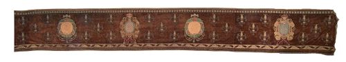 1087. Repostero de terciopelo marrón con bordados de aplicación.