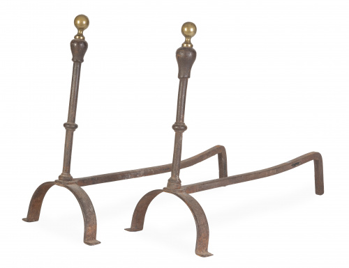 1103. Pareja de morillos de hierro con remate de metal dorado.