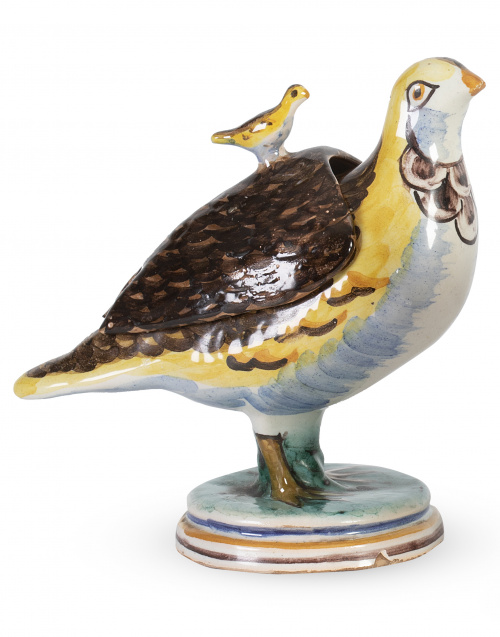 1123. Salsera o compotera en forma de perdiz de cerámica esmaltada.