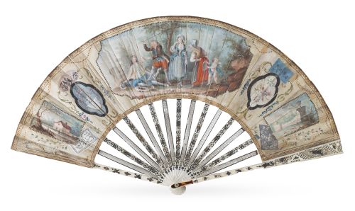 Home / SUBASTA MARZO 2023 / Abanico Luis XVI con varillaje de marfil calado y dorado co
