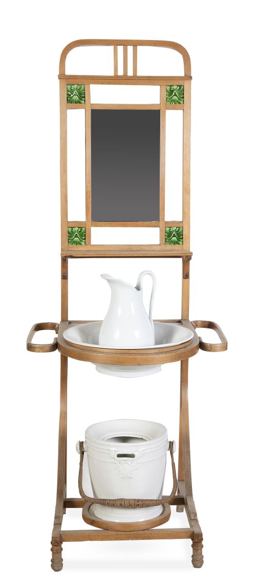 Home / SUBASTA MARZO 2023 / Lavabo Art-decó de madera con espejo y placas de cerámica e