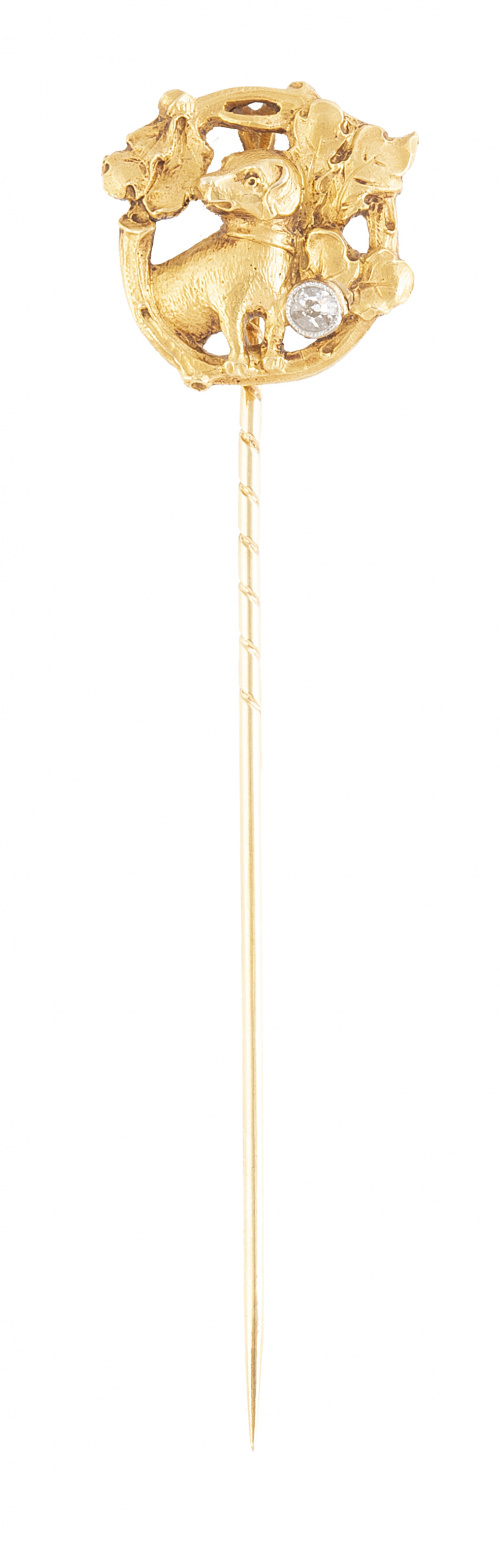 Home / SUBASTA JUNIO 2023 / Aguja de corbata modernista con perrito y chatón de brillan