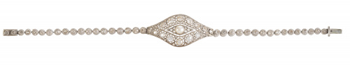 133. Pulsera Art-Decó c.1920 firmada JHONN RUBEL Co, de chatones de brillantes con centro ojival de brillantes con decoración calada y perla fina central