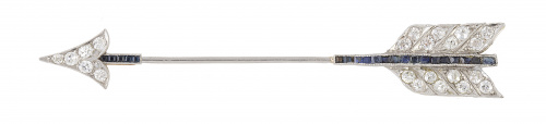 137. Elegante broche flecha Art-Decó con brillantes de talla antigua y zafiros calibrados