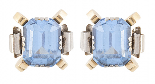 Home / SUBASTA JUNIO 2023 / Pendientes modernistas con piedra azul central talla esmera