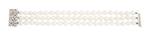 Home / SUBASTA JUNIO 2023 / Brazalete de tres hilos de perlas cultivadas con cierre de