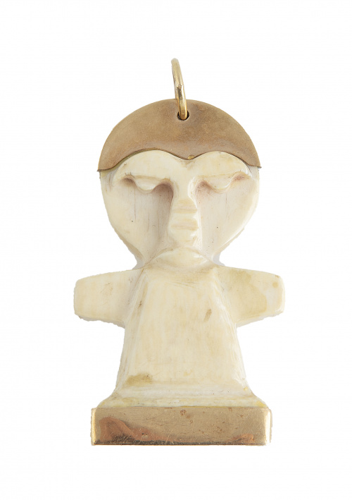 Home / SUBASTA JUNIO 2023 / Gran colgante de marfil y oro con diseño de figura étnica