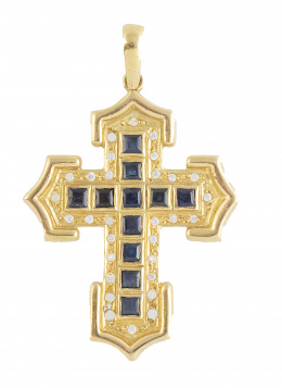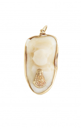 Home / SUBASTA JUNIO 2023 / Colgante con turmalinas verdes rodeadas por marco lobulado