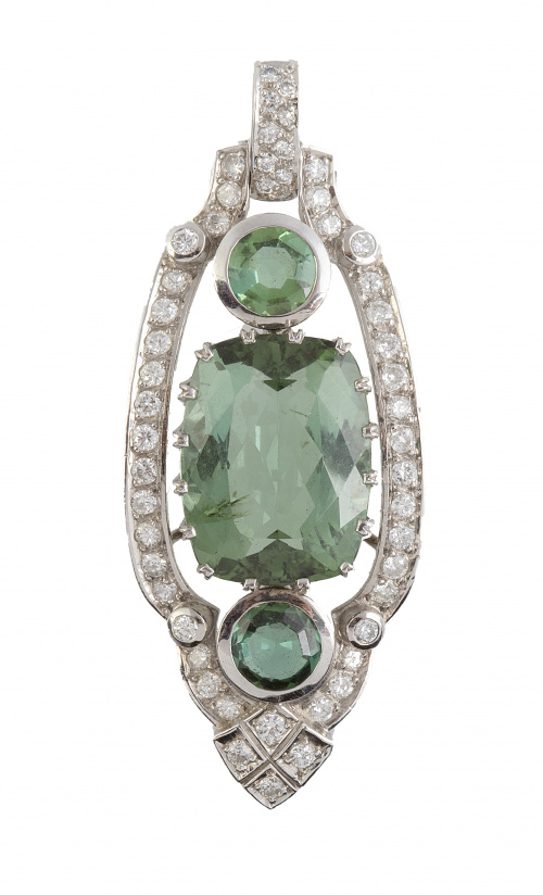 381. Colgante con turmalinas verdes rodeadas por marco lobulado de brillantes