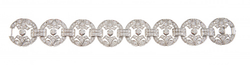 Pulsera de brillantes con ocho centros circulares calados articulados por dobles bandas de brillantes