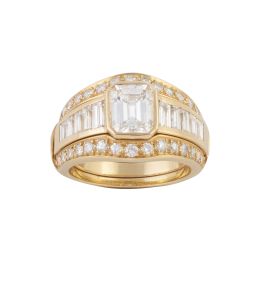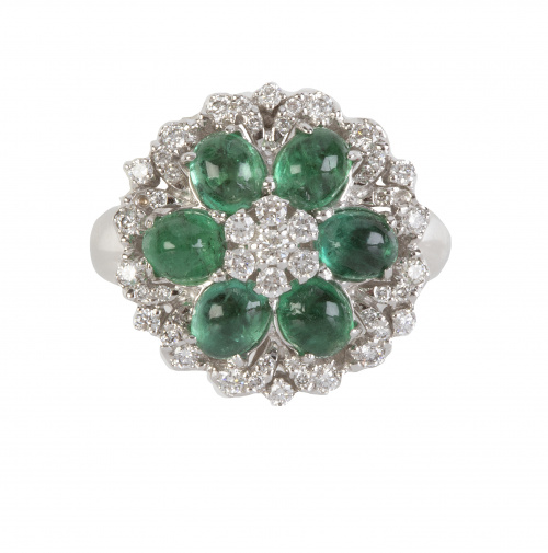 415. Sortija flor de cabuchones de esmeraldas rodeadas de brillante y con rosetón de brillantes central