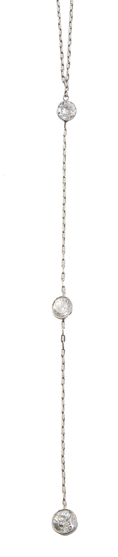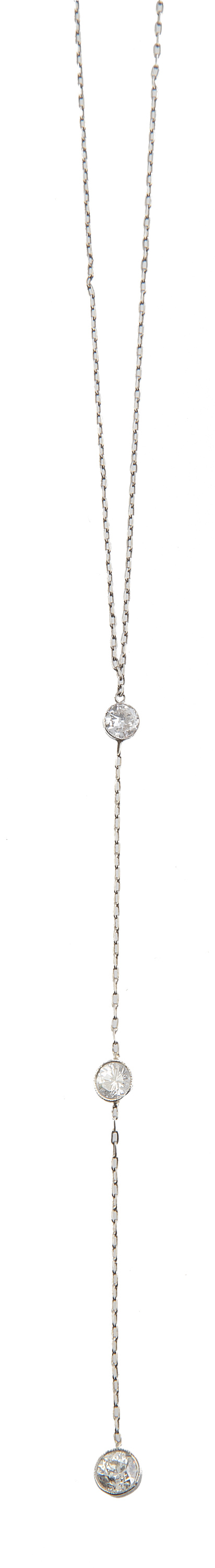 Pendentif de estilo Belle époque con tres brillantes en chatón y cadena fina