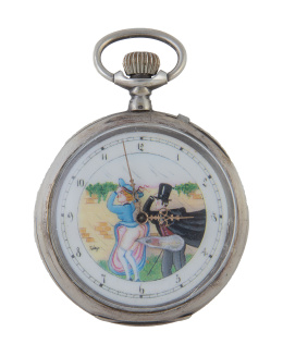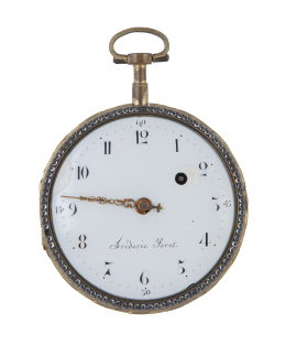 Numeración arábiga esmaltado en negro. Esfera segundero a las seis.