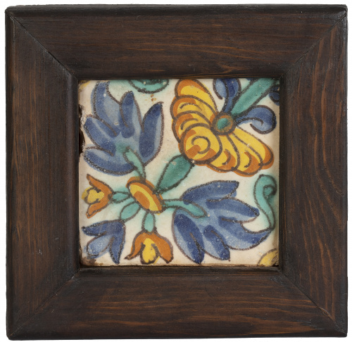 502. Azulejo de cerámica esmaltada con decoración floral.