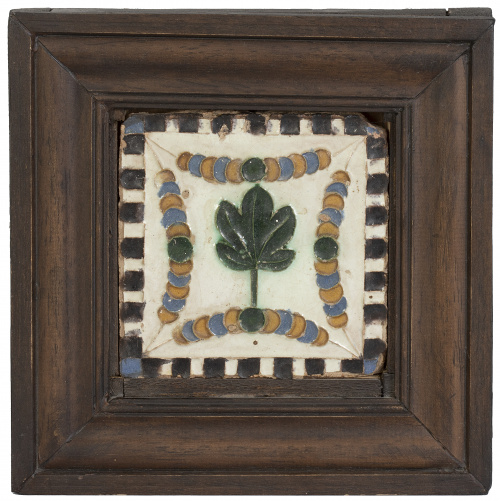 524. Azulejo de cerámica de arista esmaltada con hoja.