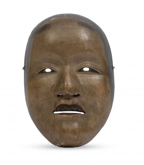618. Máscara japonesa de teatro Noh de madera tallada y policromada.