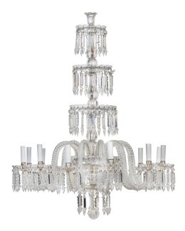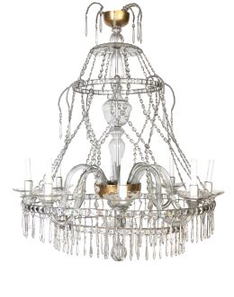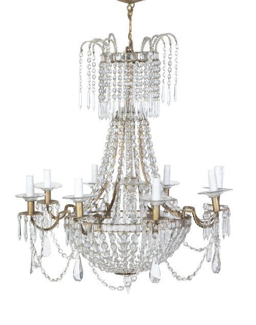 634. Lámpara de ocho brazos de luz de estilo imperio de cristal tallado transparente.
