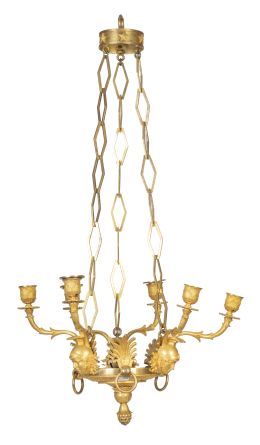 Home / SUBASTA JUNIO 2023 / Lámpara de ocho brazos de luz de estilo imperio de cristal