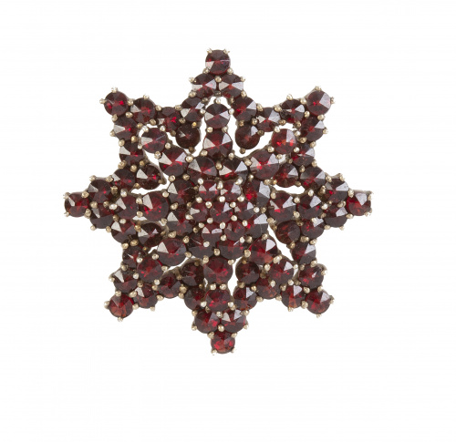 78. Broche estrella de pp S. XX de granates en plata vermeil