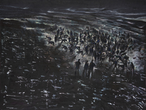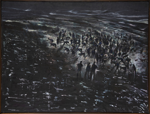 En esta obra vemos, desde una posición elevada, un paisaje marino nocturno en el que una gran multitud de personas se afana en salir del agua y llegar hasta la playa. Son personas que llegan extenuadas, muchas caen de rodillas, algunas van en grupos y se ayudan mutuamente. Tres ya están fuera y observan a los que llegan.