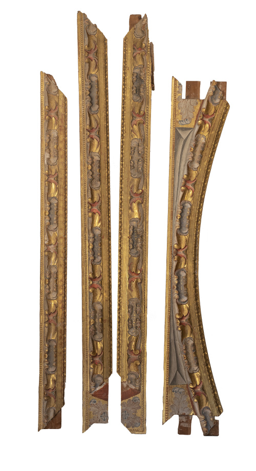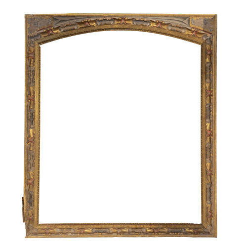 1188. Marco de madera tallada, policromada y dorada, con hojas carnosas y contarios.