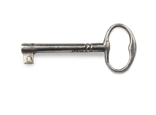 Cerradura recortada y grabada con tornapuntas en "c", asas laterales y en la tapa vegetalizadas. Conserva la llave en plata. Con falta en la cerradura, partida, pero conserva la pieza.