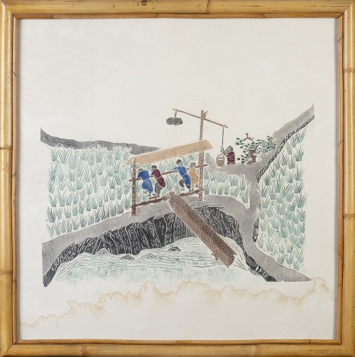 Home / SUBASTA JUNIO 2023 / Papel de arroz decorativo con escena de cultivo de arroz.