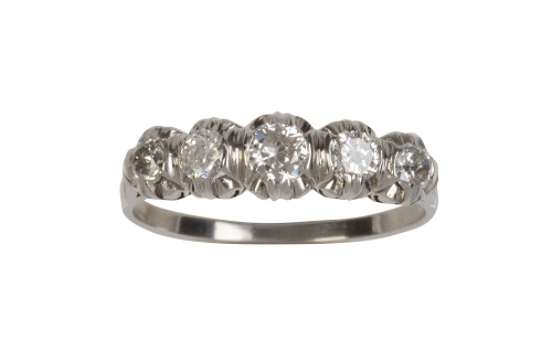 Sortija cintillo de pp. S. XX con brillantes de tamaño creciente hacia el centro engastados en garras