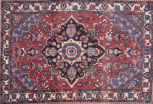 Alfombra caucásica en lana de campo rojo y medallón central.