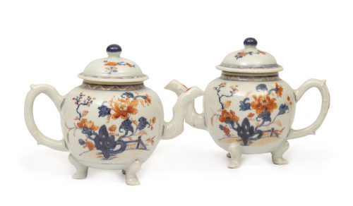 673. Pareja de teteras para la exportación de porcelana esmaltada en rojo y azul de estilo Imari.