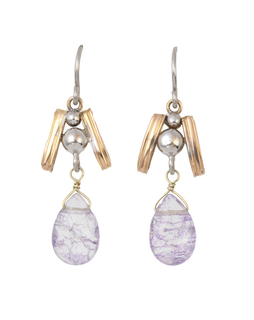 211. Pendientes largos de amatista talla pera facetada