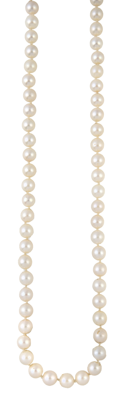 Collar de un hilo de perlas cultivadas con cierre de oro y plata