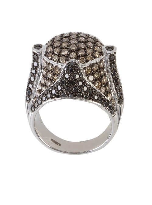 Sortija de brillantes brown y negros con diseño de cúpula