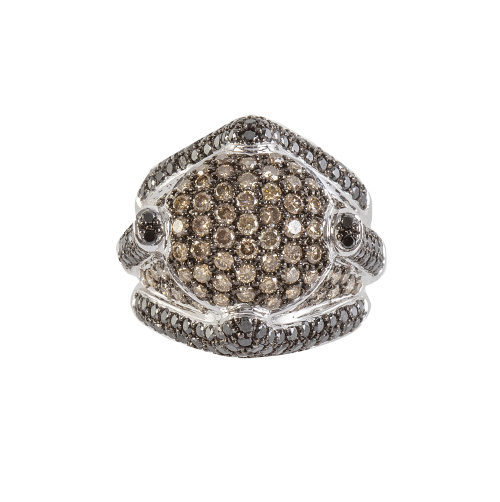 400. Sortija de brillantes brown y negros con diseño de cúpula