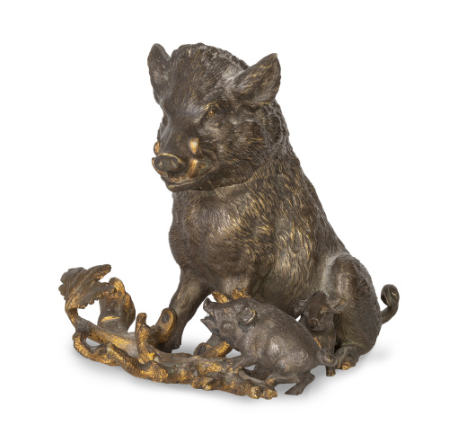 Home / SUBASTA DICIEMBRE 2023 / Plumier de bronce y bronce dorado en forma de jabalí con ra