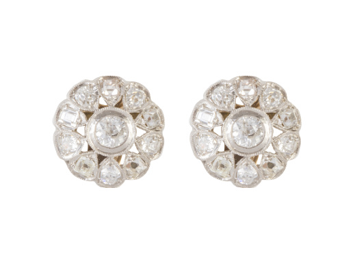 78. Pendientes rosetón circular de brillantes de talla antigua de pp. S. XX
