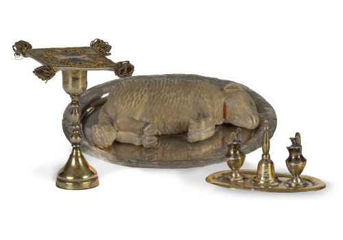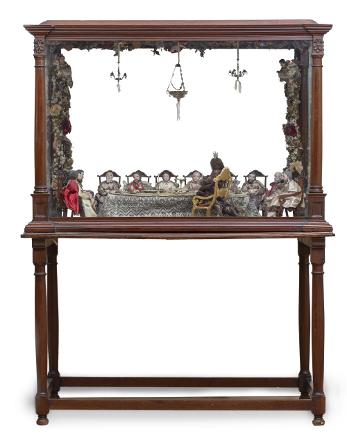 El escaparate de madera de caoba, la puerta posterior se desliza para poder ser abierta y tiene un espejo donde se refleja Jesús, para poder ser visto. El suelo de madera de caoba y limoncillo formando un ajedrezado. En la bolsa que lleva Judas se encuentra una moneda de época de Fernando VII fechada en 1832.