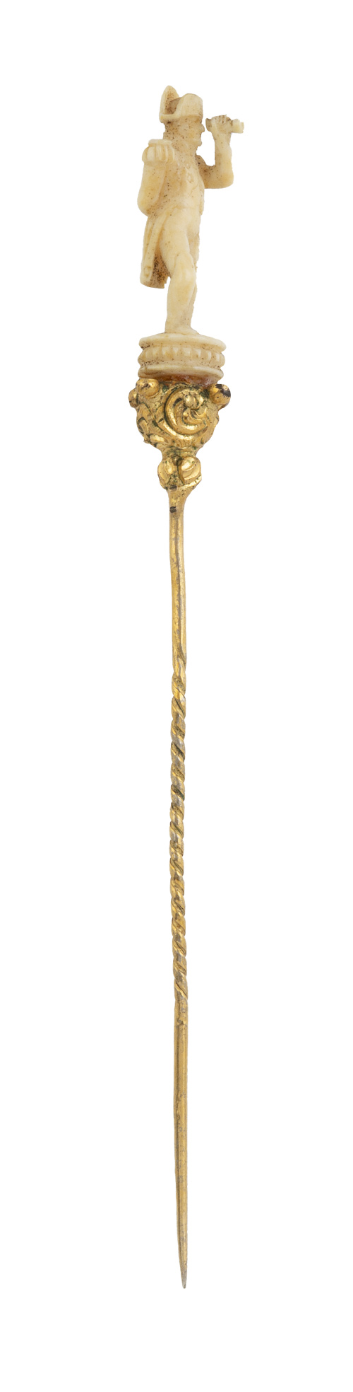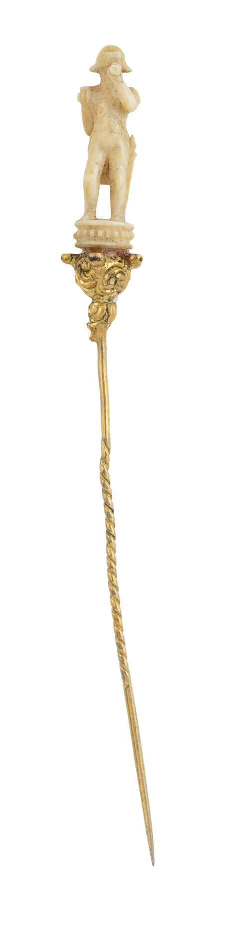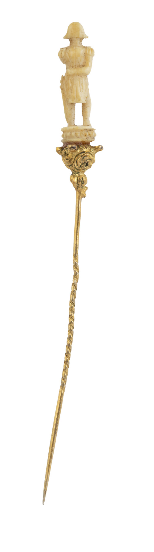 Alfiler de corbata S. XIX con figura de Napoleón delicadamente tallado en marfil en bulto redondo, sobre capitel labrado