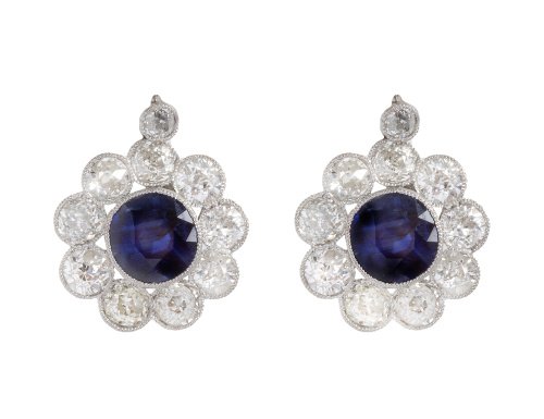 Home / SUBASTA DE MARZO 2024 / Pendientes flor de brillantes de talla antigua y zafiros de