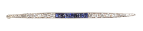 151. Broche barra Art-Decó de brillantes con banda central de zafiros calibrados