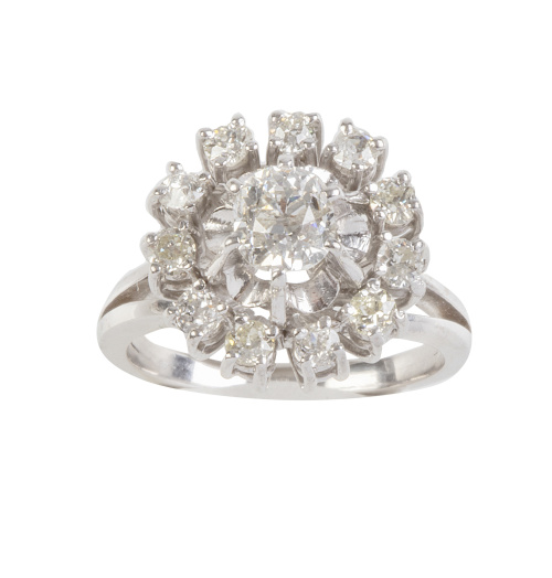 Sortija rosetón de brillantes con brillante central elevado en seis garras
