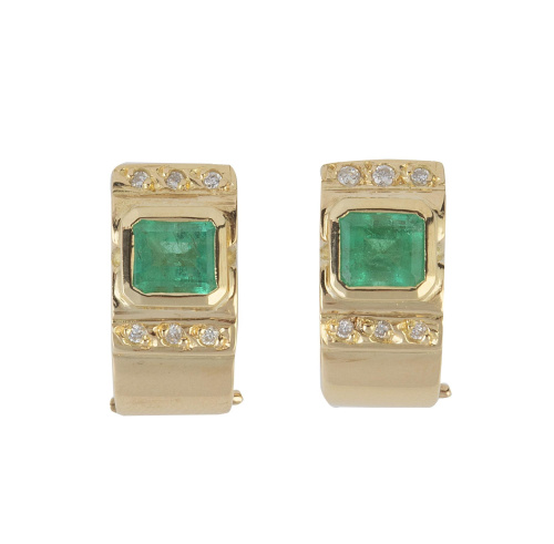 Pendientes de esmeraldas entre bandas de brillantes, con diseño de bandas curvas