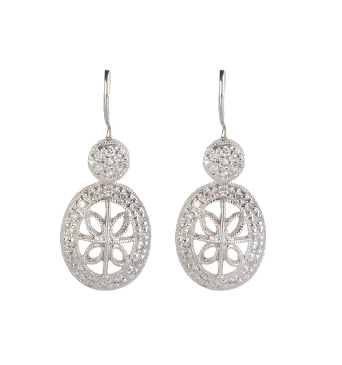 Pendientes largos con brillantes en óvalos calados con rosetón superior