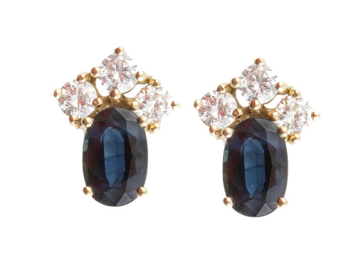 290. Pendientes con zafiro oval y trío de brillantes superior