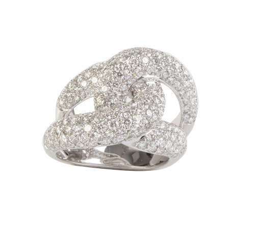 299. Sortija nudo de pavé de brillantes en dos bandas curvas entrelazadas