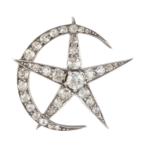 379. Broche Victoriano S. XIX de brillantes de talla antigua con estrella y media luna