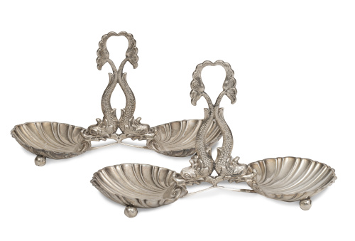735. Pareja de almendreros de plata. Con marcas.