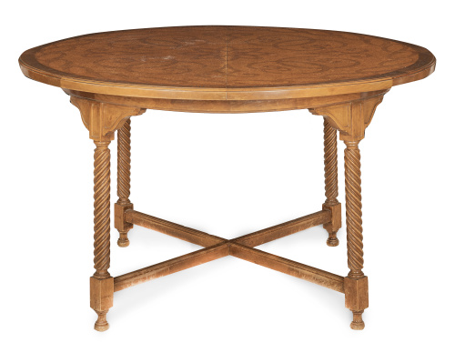 1179. Mesa de comedor de corcho y madera con inscripción en latín en el perímetro.