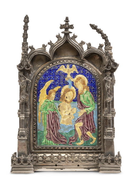 Home / SUBASTA DE MARZO 2024 / Portapaz de plata y esmalte con el bautismo de Cristo. Con