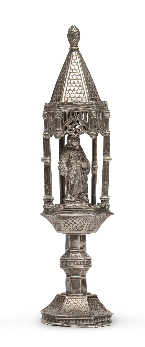Home / SUBASTA DE MARZO 2024 / Templete de plata en su color con una Virgen en bulto redon